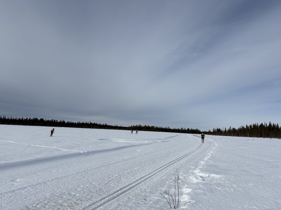 We were greeted by gray skies as we prepared ourselves for today’s ski, a near 35km journey that would take us 2.5 hours to complete. Following a rough snowmobile track, we were led through vast arctic forests and across frozen lakes. Due to the narrow and rutted track most of the skiing was double poling and we were all sore and tired by the end. Our destination was a small pond where we would try ice fishing. After lunch around a campfire, we set out with the goal of catching every fish in the pond. The ice was several feet thick making it difficult to drill holes by hand, especially after our long ski. We patiently waited, fighting off the cold, for bites, but ended up catching nothing. Despite a disappointing number of fish, it was still an interesting experience and a memorable day.