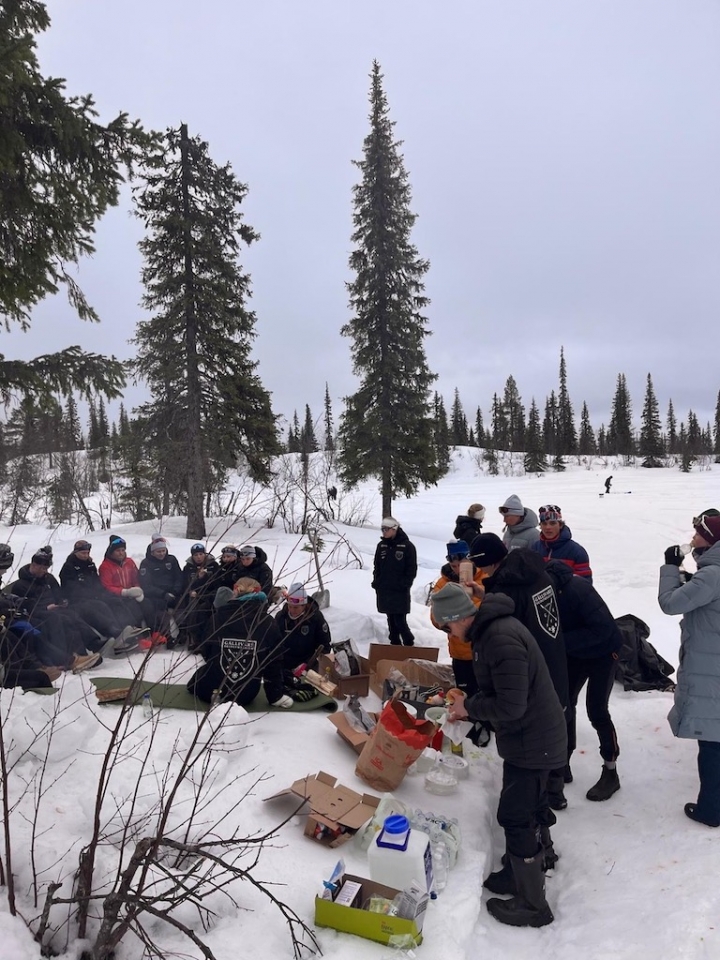 This morning, we skied around the Dundret Mountain which was a flat 30km loop. It was a beautiful day, and colder conditions made for perfect crust skiing on the side of the trail. After our ski, we headed to the school for a delicious catered lunch made by the nice chef Pia. After lunch, we walked over to the Mange Takk cafe where we enjoyed some fika with the Swedes. We had cinnamon buns with a Swedish drink. After fika, we headed back to our cabins to get ready for a strength session at the Gällivare gymnastics centre. After a few flips into the foam pit and muscle ups on the bars, we got started on a short core circuit and some strength. At the end of the session, we had some friendly sprints on the track. We ended the day with some tacos made by the athletes for dinner, and watched another horror movie with some of the Swedes.