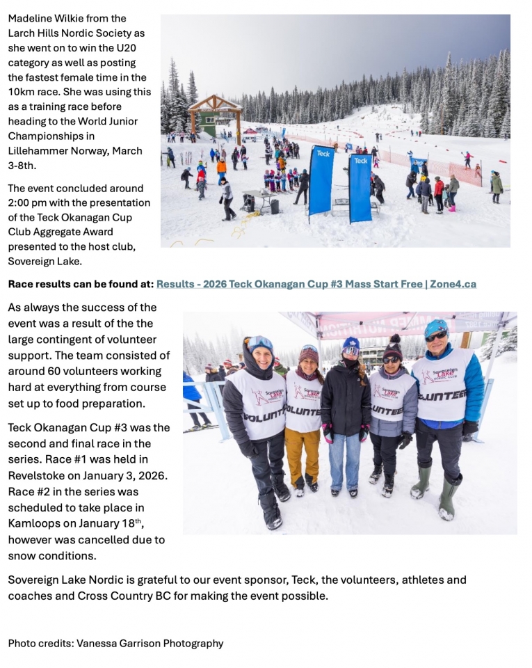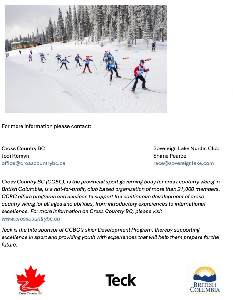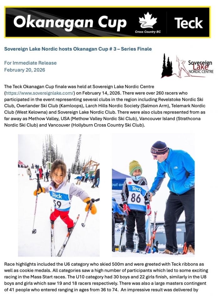 Press Release: Sovereign Lake Nordic Hosts Teck Okanagan Cup Series Finale (Vernon, BC)