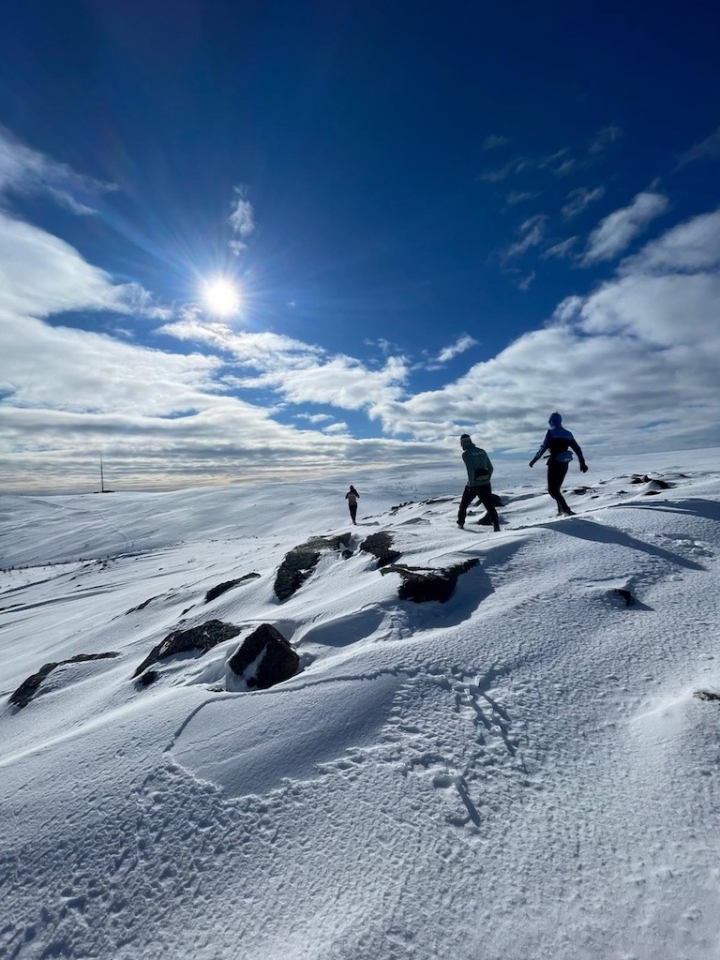 This morning, most of the group woke up planning to do an optional ski up Dundret Mountain. After skiing around for nearly an hour and finding no groomed trail that led to the top, we decided to hike straight up the very steep mountain, carrying our skis on our shoulders. It was a long climb, but it was completely worth it! Our trek up Dundret was rewarded with a gorgeous view, strong winds, sunny weather, and a very exciting ski down. We all agreed that the descent was one of the most exhilarating of our lives.