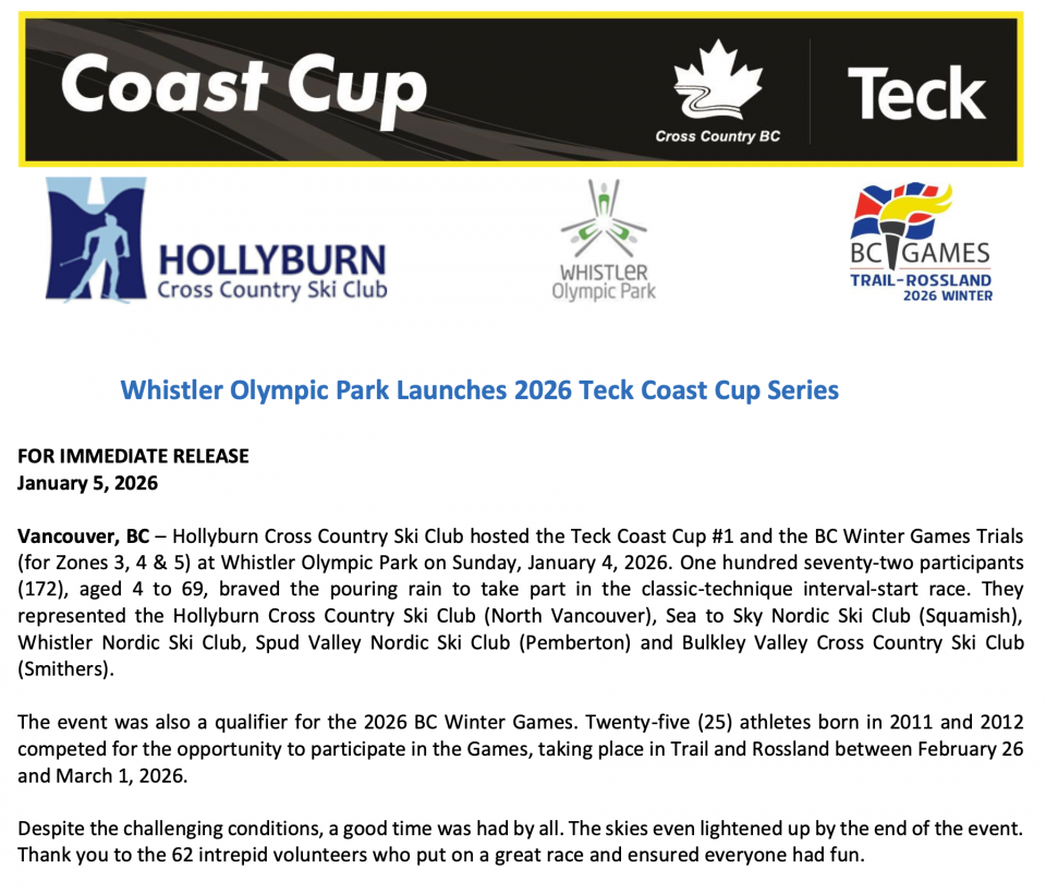 Whistler Olympic Park Launches 2026 Teck Coast Cup Series »
